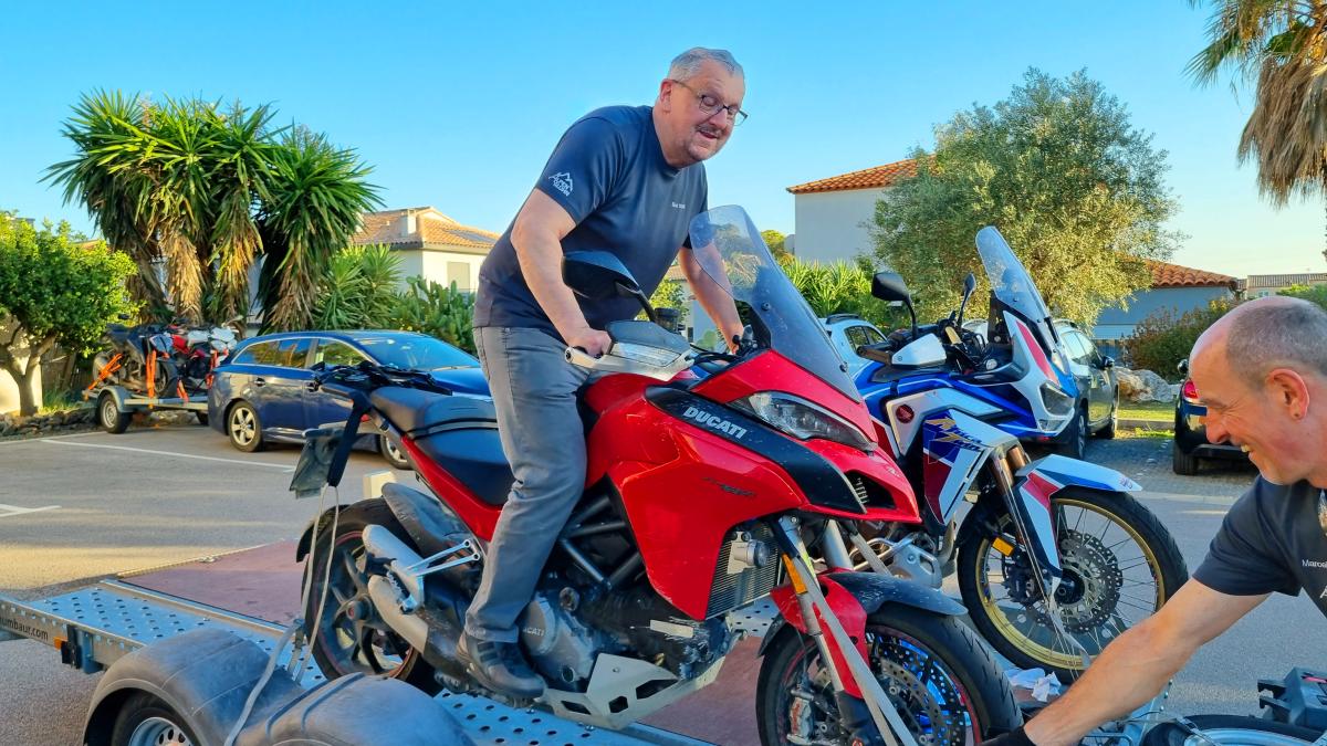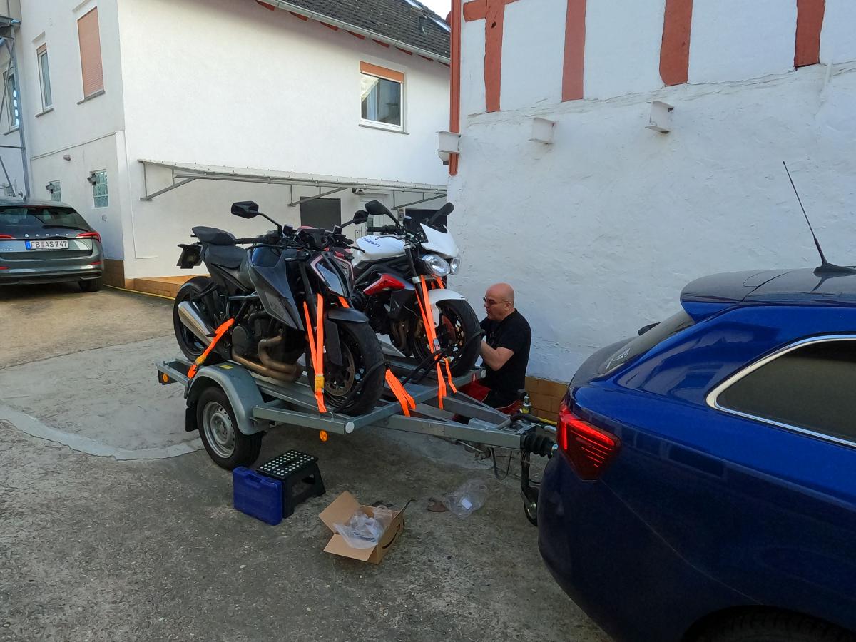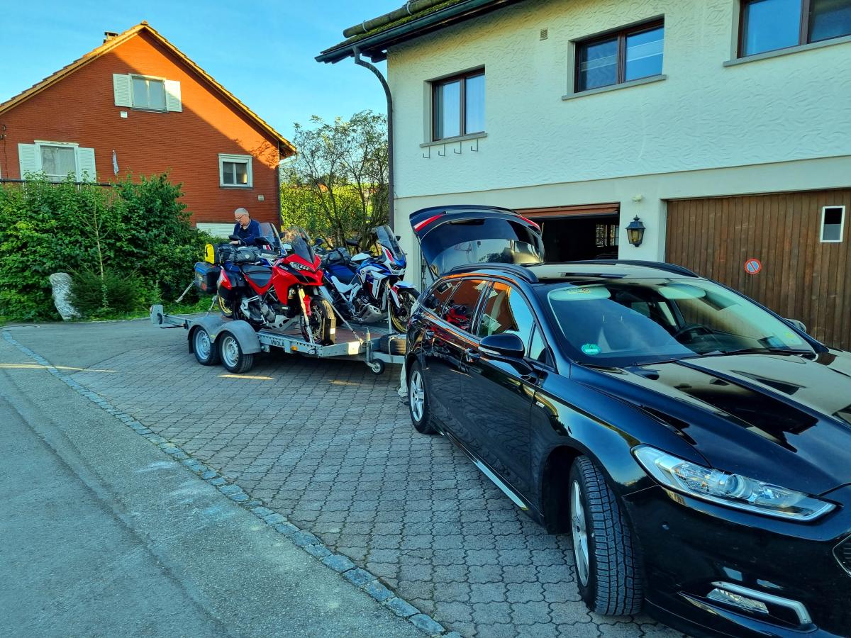 The Pyrenees are quite far away. Therefore, the journey takes two days. I ride to Franz and from there we go with the trailer to the starting point in Perpignan. Andi rides to Marcellus. They go with the trailer first to Beat and from there to Perpignan. Wolfgang drives first to the Vercors and then continues to Perpignan.