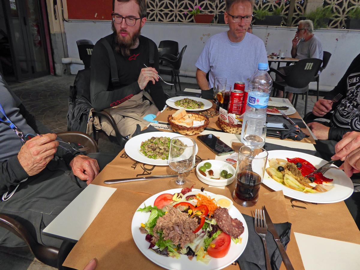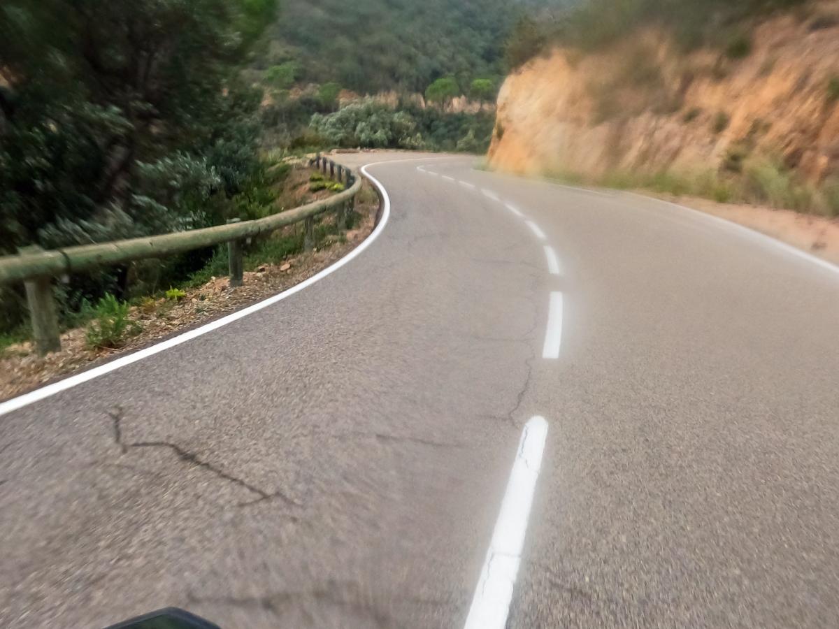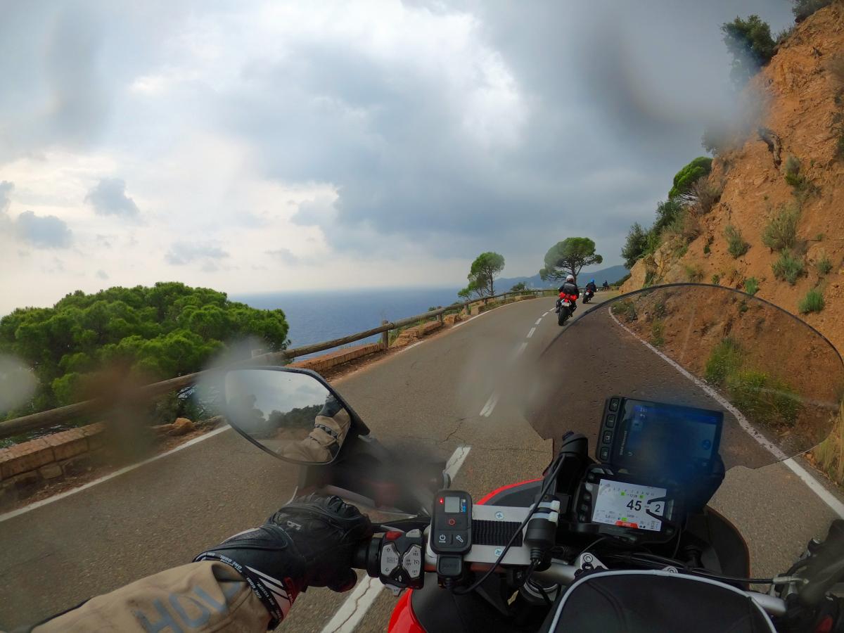 The first day of driving. The route first goes along the Mediterranean Sea before we turn into the mountains. The weather forecast is not so great. We will get rain. Later in the day on Coll de la Creueta it rains heavily and we get into thick fog. But we had the beautiful coastal road before that and also good Spanish food for lunch.