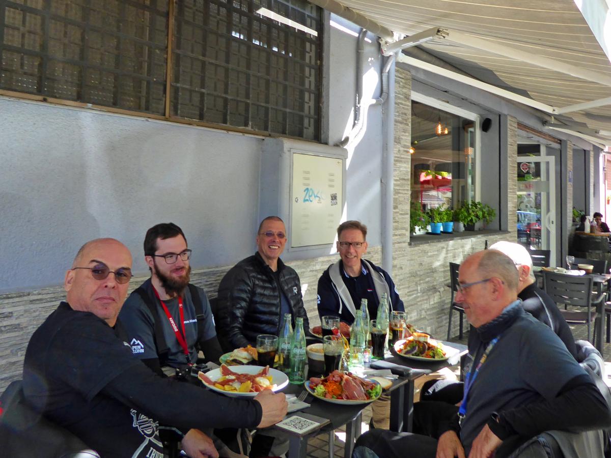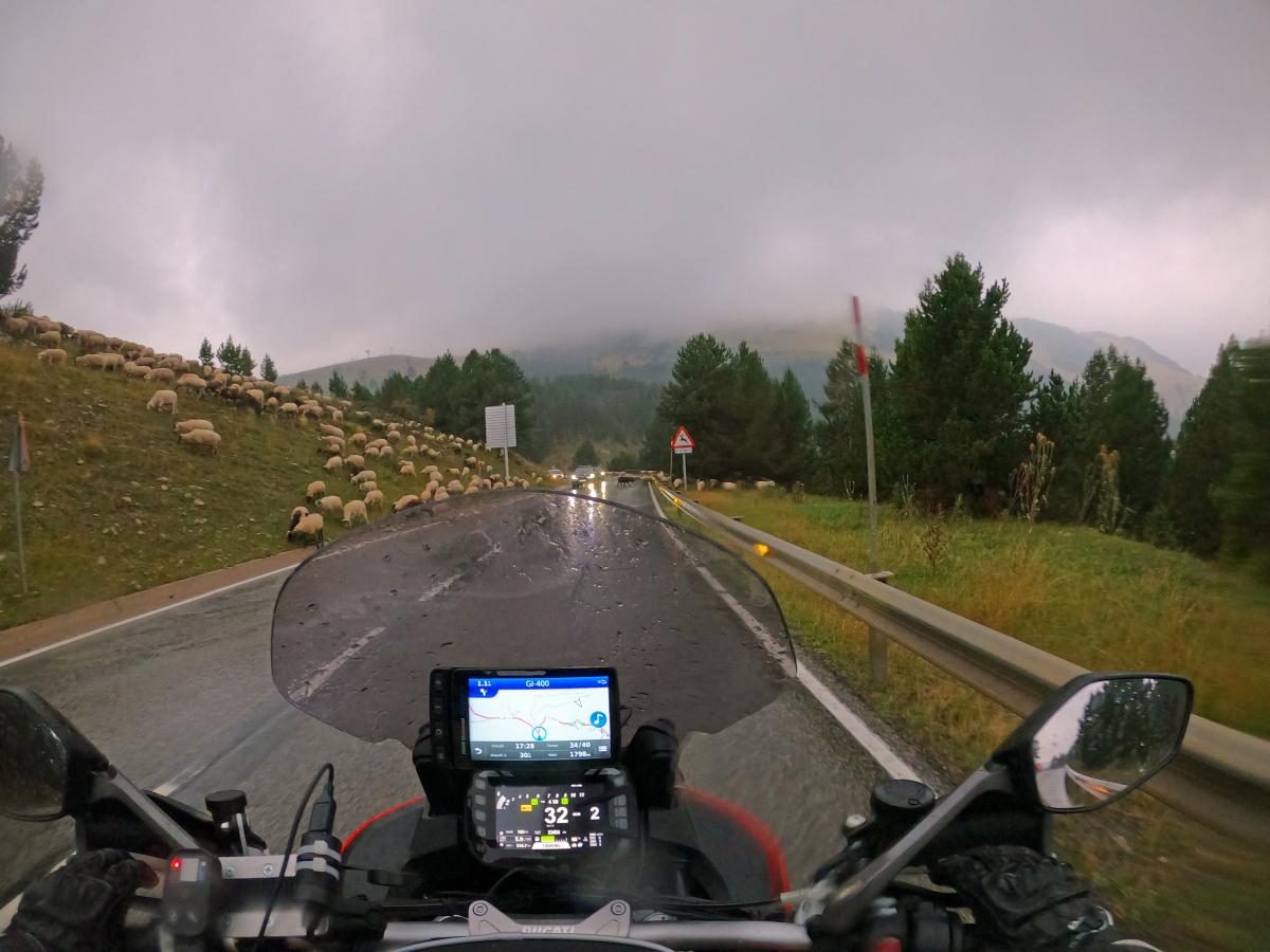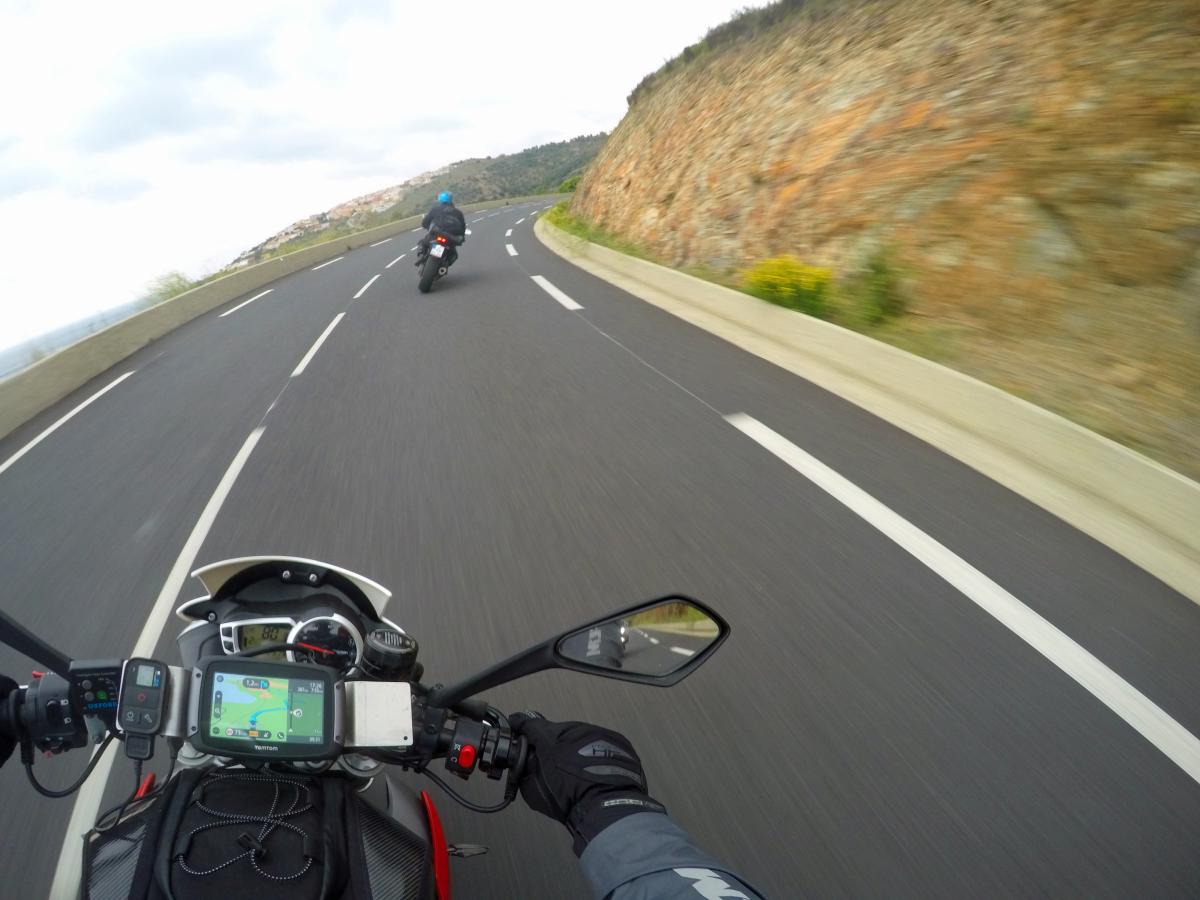 The first day of driving. The route first goes along the Mediterranean Sea before we turn into the mountains. The weather forecast is not so great. We will get rain. Later in the day on Coll de la Creueta it rains heavily and we get into thick fog. But we had the beautiful coastal road before that and also good Spanish food for lunch.