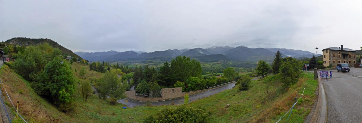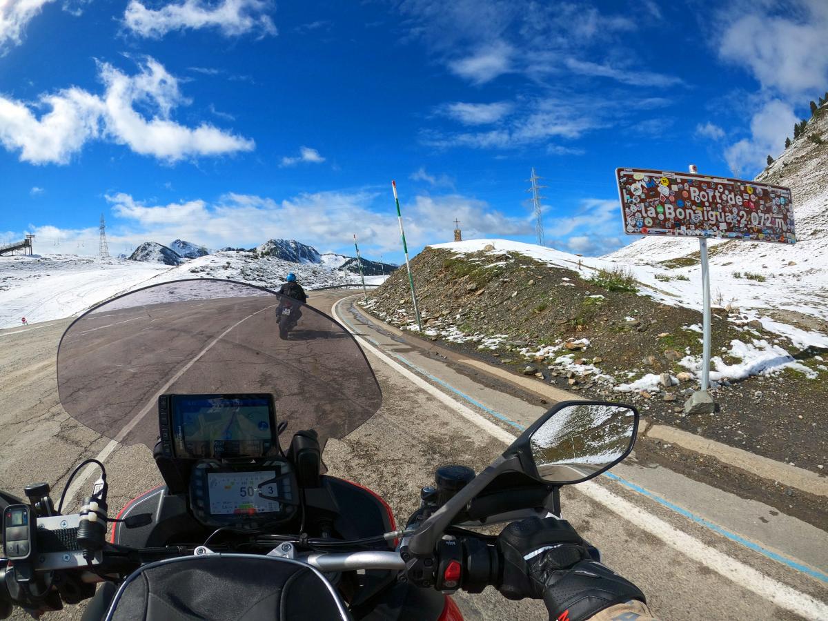 The weather is still not that great. It rained heavily overnight and it's still raining. On the way to Port de Pailhères we see the snow in the higher elevations and decide to head west. We quickly reach dry areas and on the Port de la Bonaigua we meet the snow we would have had on the Port de Pailhères and on the 1200 ft higher Port d'Envalira. Here it is also cold, but dry. We would have had to move through snow showers on the planned route.