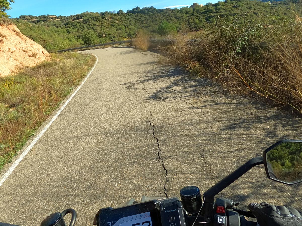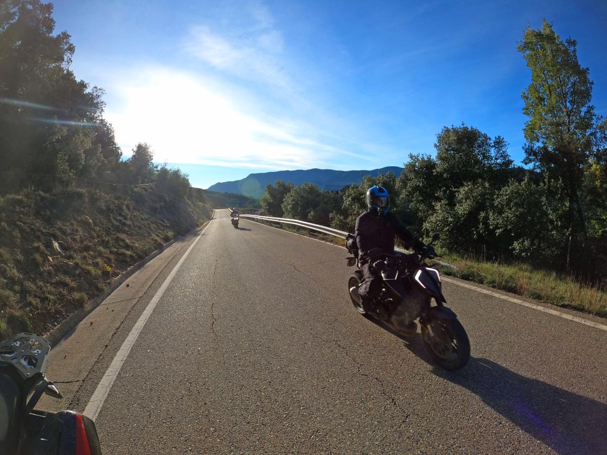 It is still very cold in the morning. After the good tapas dinner, we now go on a southern loop over fast but lonely roads. Especially impressive is a well preserved but overgrown road on the way. We reach our planned lunch spot too early. But that doesn't matter, because the roads continue to wind wonderfully. The Coll de Merolla is incredibly curvy and also surprises us with two donkeys. And in the second attempt we enjoy the Coll de la Creueta in brilliant sunshine.