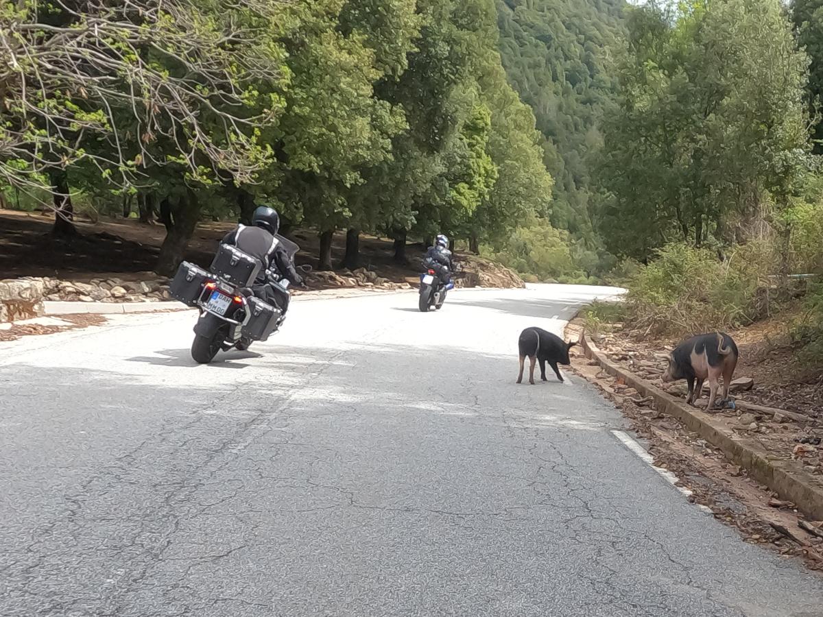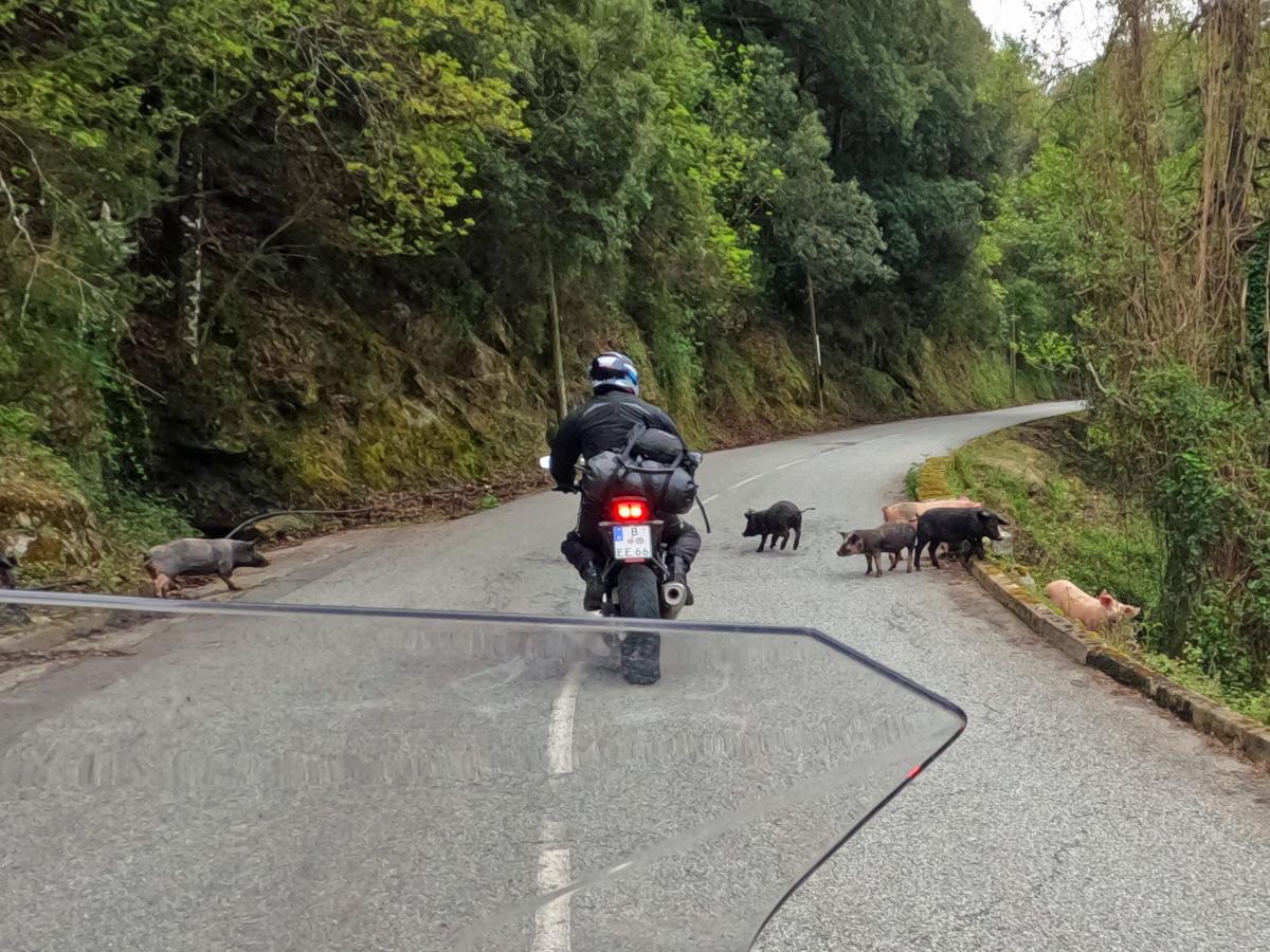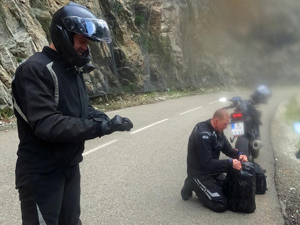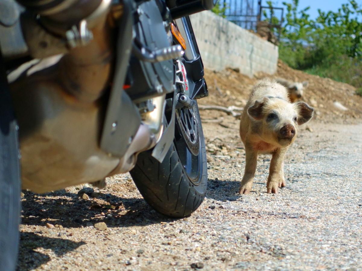 We had many animals (donkeys, goats, cows, pigs, horses) on the road and also a lot of dirt both as a result of the rain and from the animals. Two days of rain did not stop us from driving. There were also the usual but harmless bike incidents: Once not starting, an emergency repair because of a lost screw, an overturn while parked.