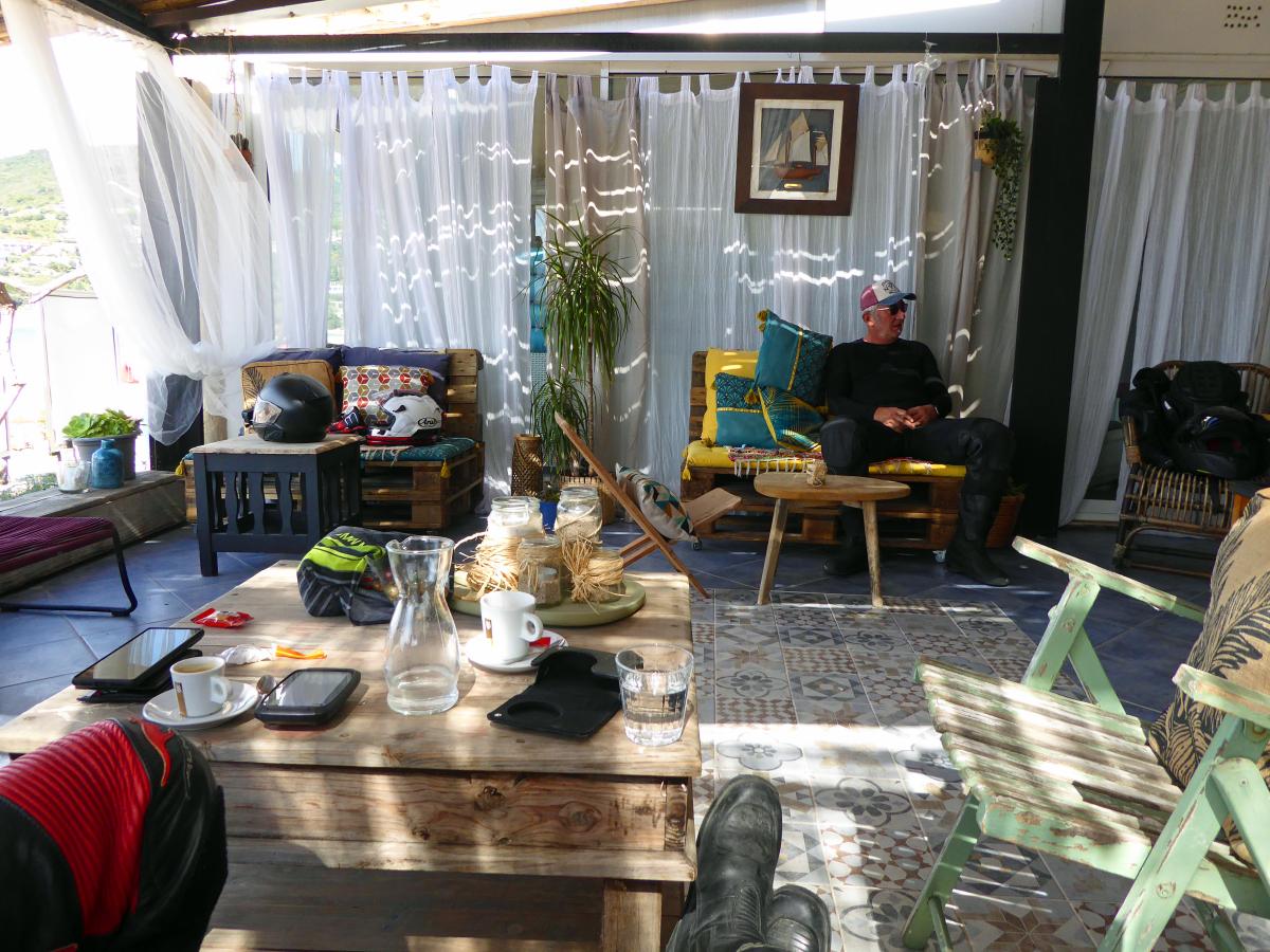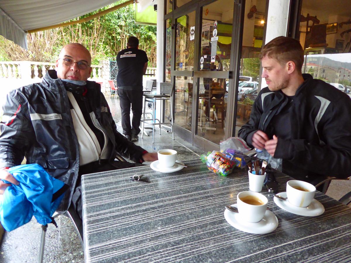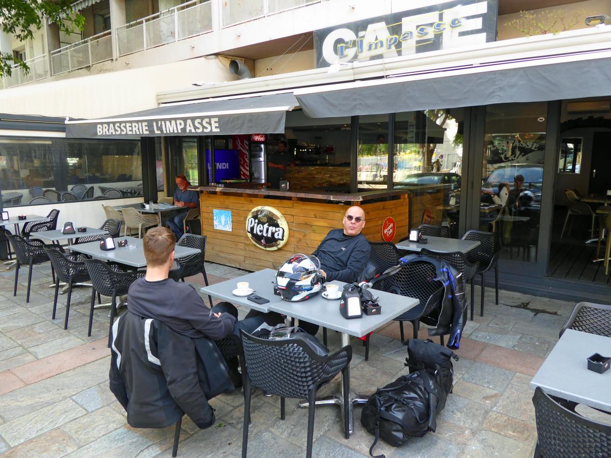Peter and Maxi leave us after morning coffee for a tire change in Ajaccio.