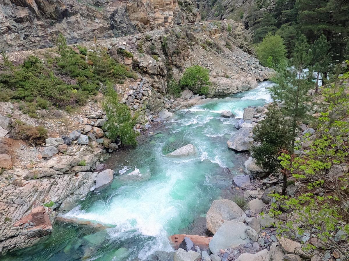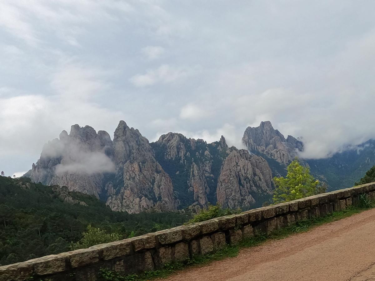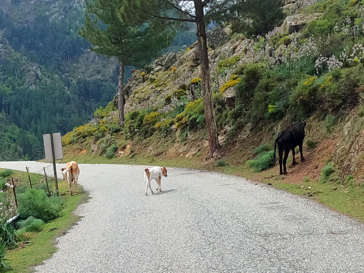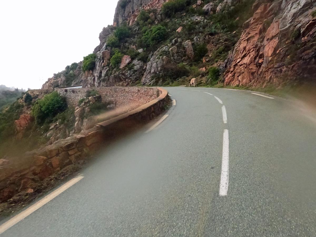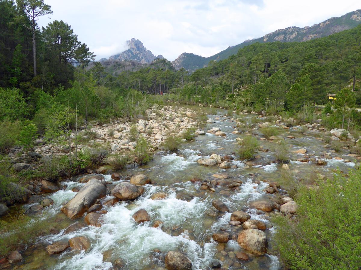 We change hotels from Calvi in the north to Zonza in the mountains in the south. After a little while on a coastal road we go into the mountains and into the Vallée de Restonica. The sun slowly disappears and we have some rain in between.