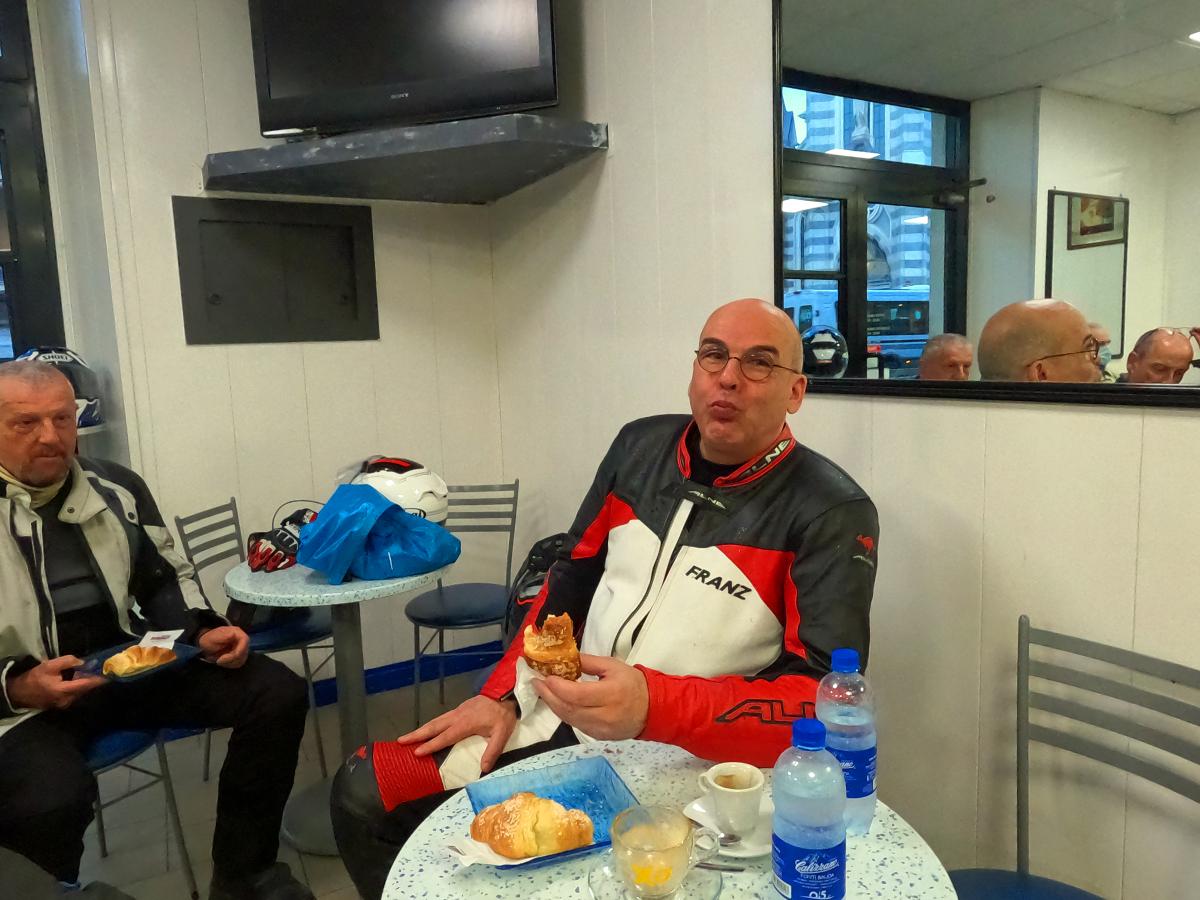 The ferry drops us off in Savona at 6 in the morning. While Michi sr and Michi jr go straight home, we have breakfast in Savona. Then we load the trailers and head back to Germany.