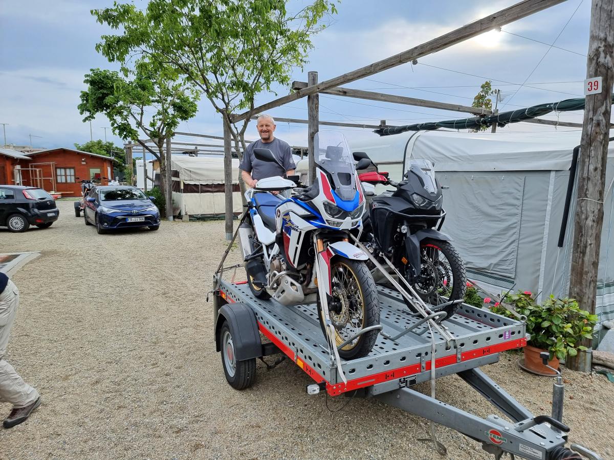 We come from different directions. For me, the trip takes two days. First I drive to Franz. There the bikes go on the trailer and we drive to Savona in Italy to the ferry.