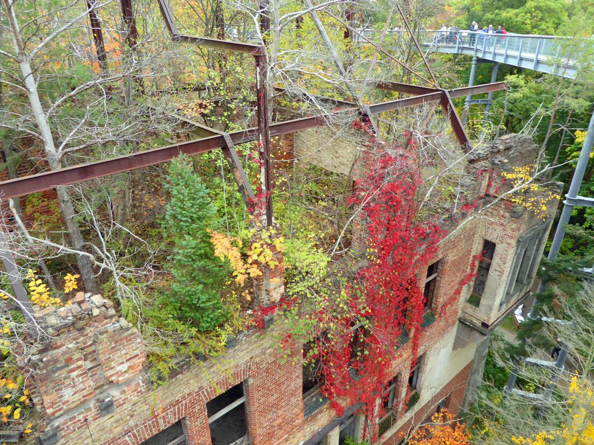 Today there is a treetop path there and you can visit the dilapidated buildings.