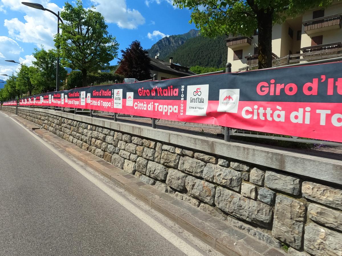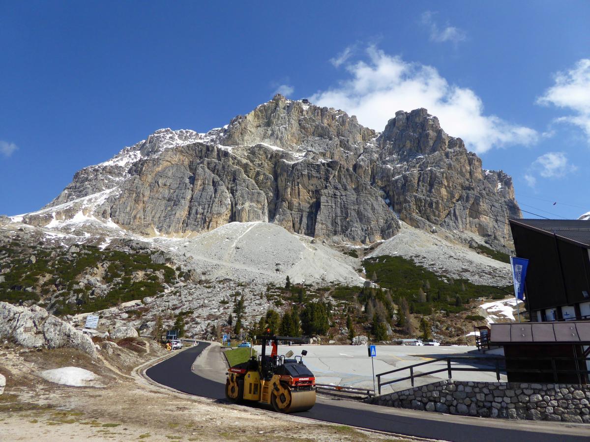 Preparations for the Giro d'Italia are underway on Passo Falzarego