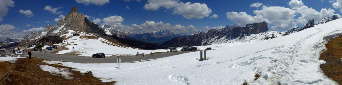 The Grödner Joch is still closed. Therefore, a full Sella Eight is not yet possible. We drive the other part and add Tre Croci, Lago di Misurina and Passo Giau. A nice round to roll in.