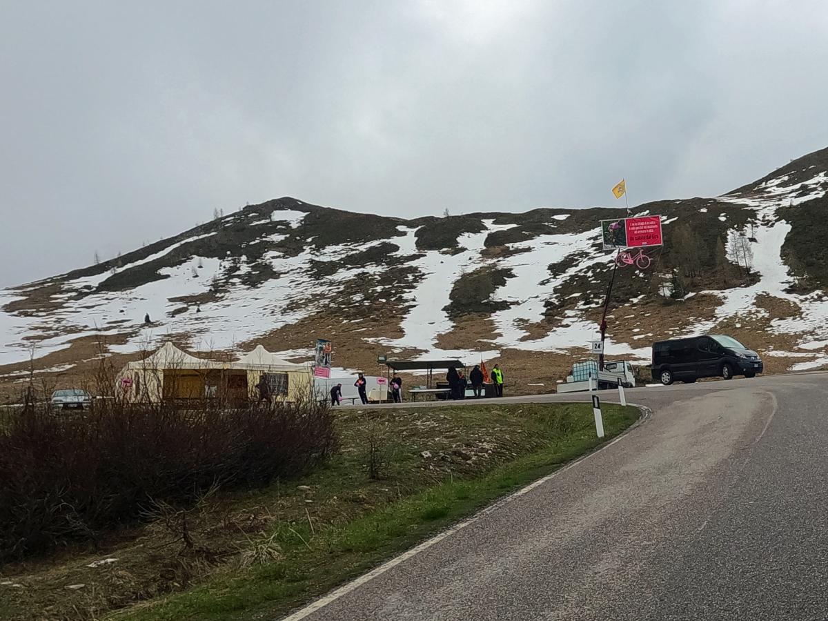 Passo Staulanza - already the day before the Giro the road is closed on the top of the pass - of course without pointing it out below. We have to go back and drive over the Passo Giau