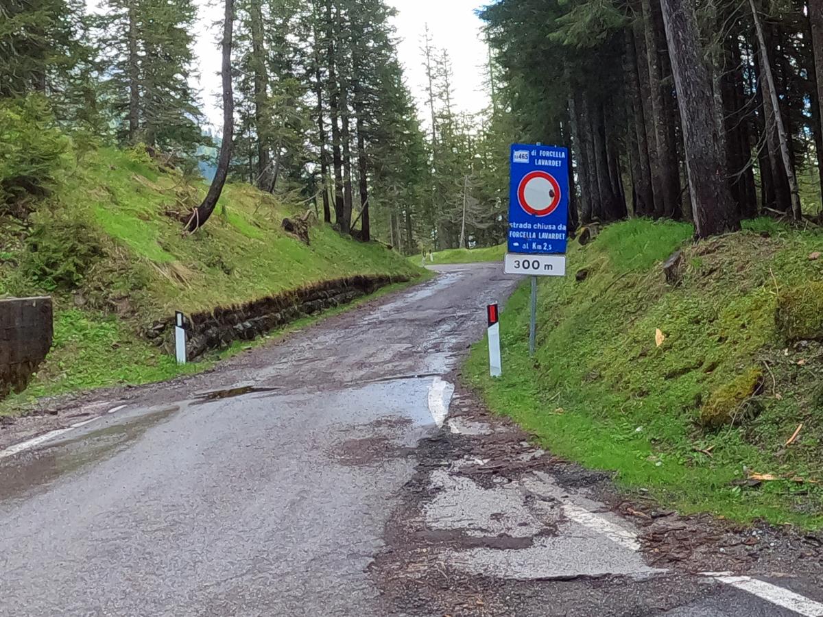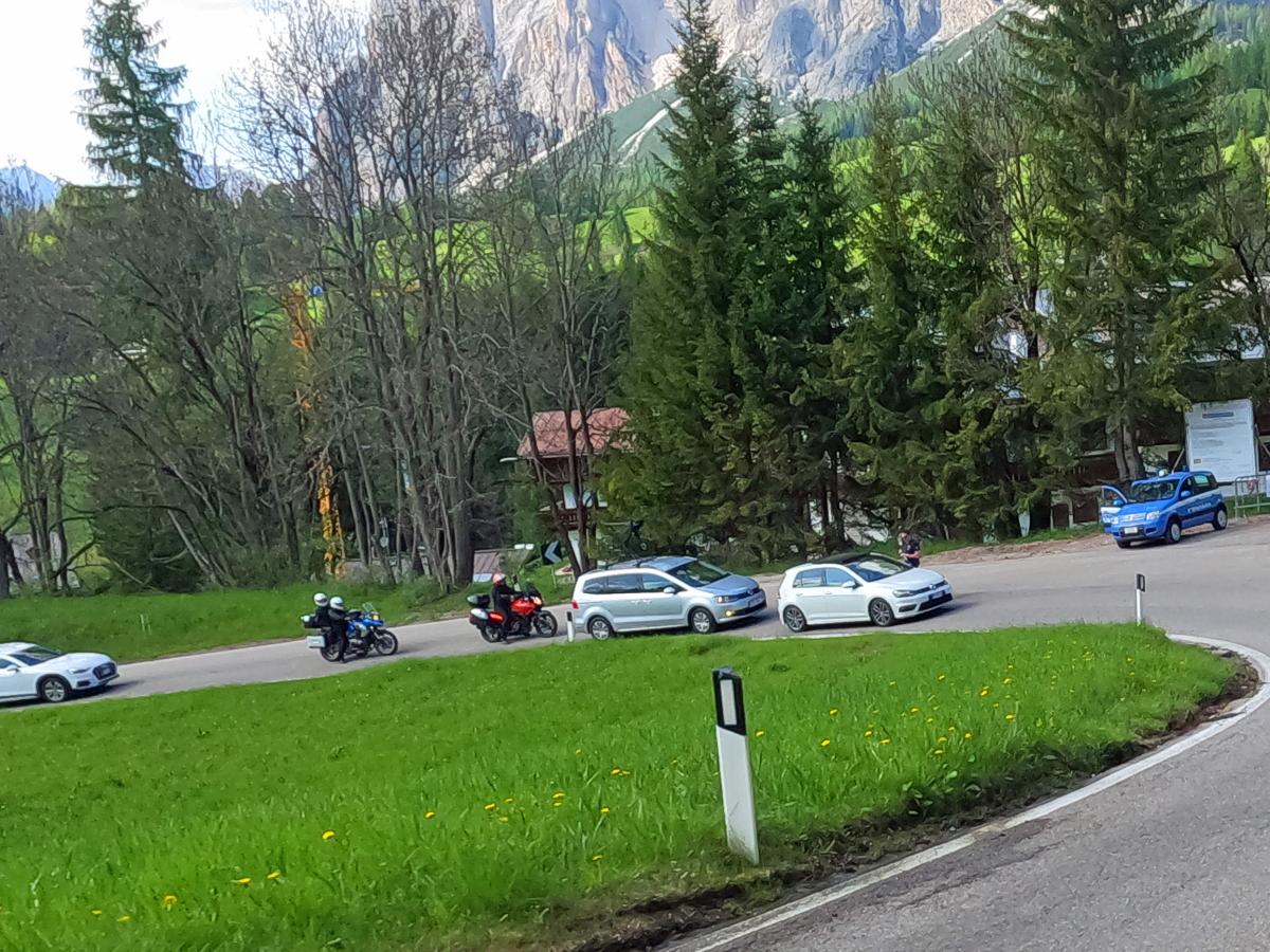 The route Tre Croci to Cortina d'Ampezzo is closed. We manage to get through. The police controls and blocks in the opposite direction