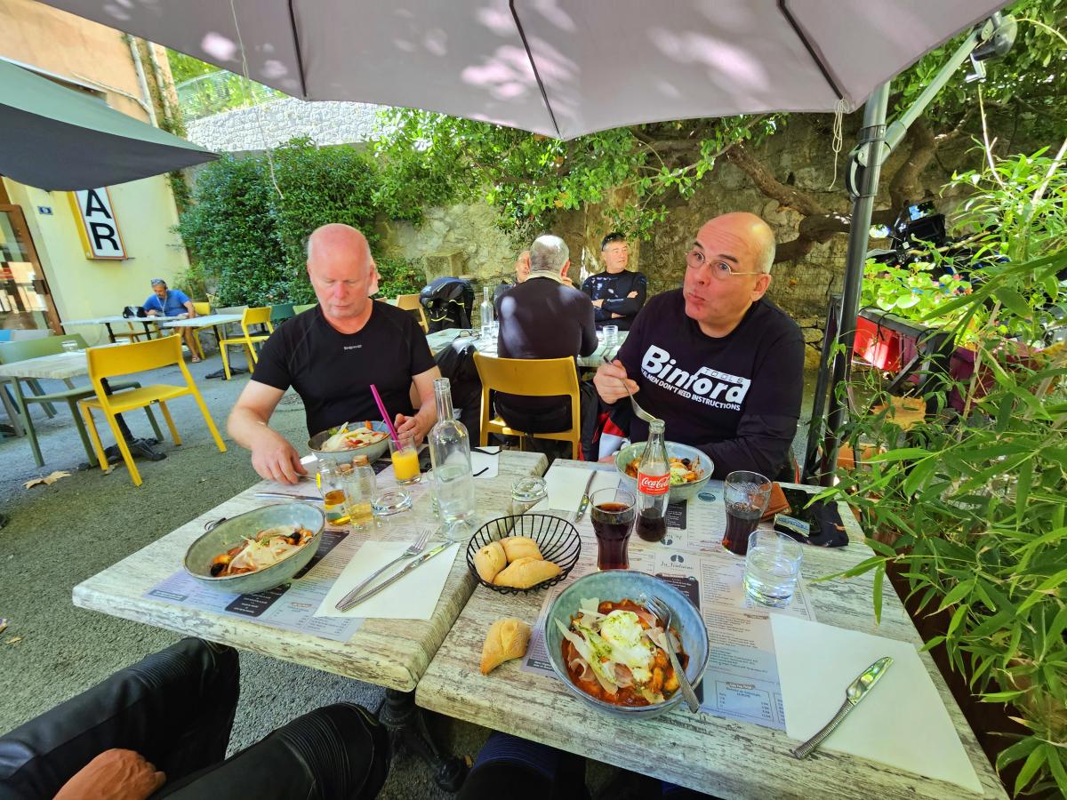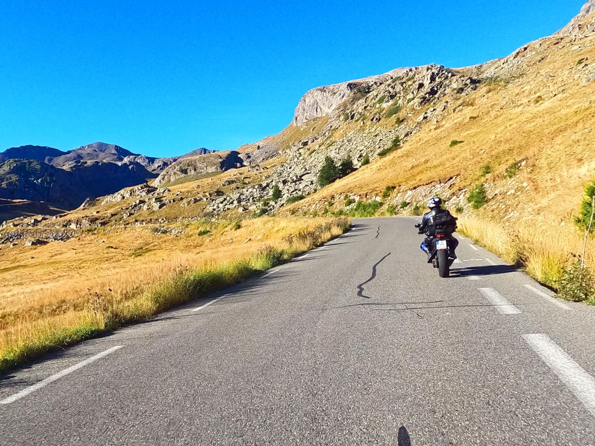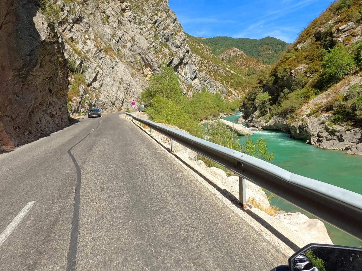 Before that we have to cross the high pass Col d'Allos. Then it becomes very Mediterranean-like: hills, pine trees and warmth. We touch the Grand Canyon du Verdon and also drive through the Gorges de Daluis, which is very impressive because of its rugged red rocks. The day ends with the again quite high Col de la Cayolle