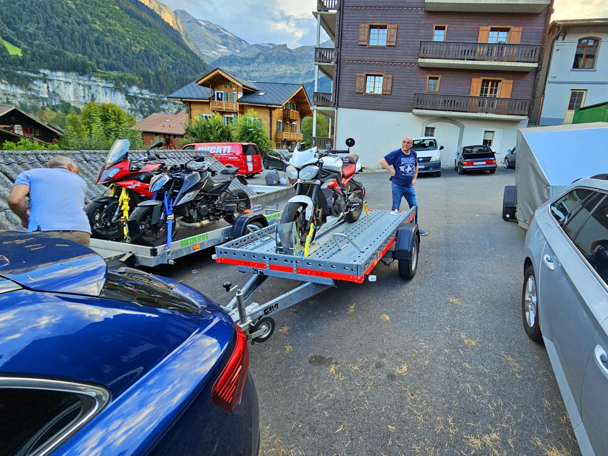 Gerd, Franz, Thomas and Andreas travel with a car trailer or van.