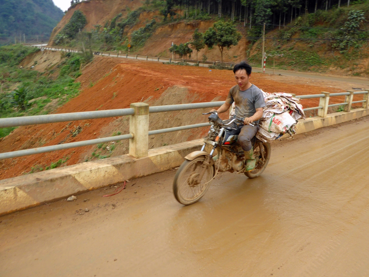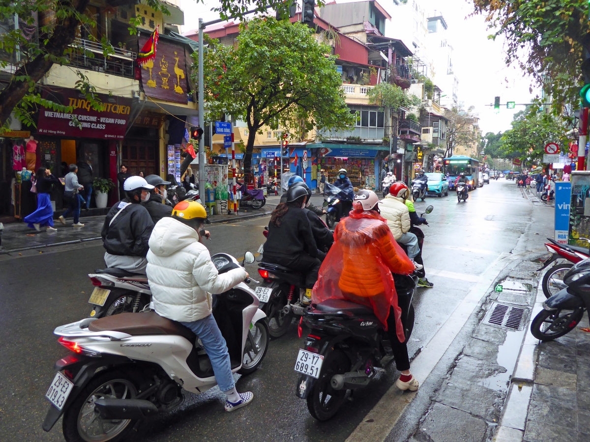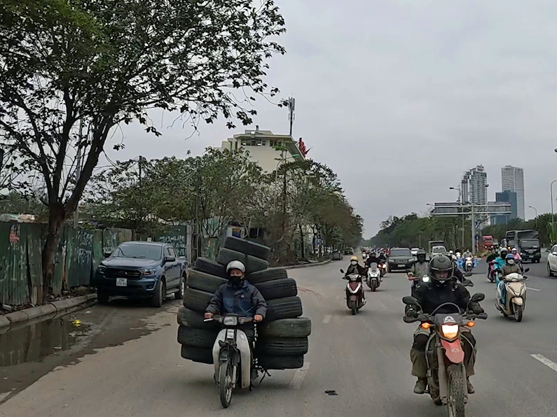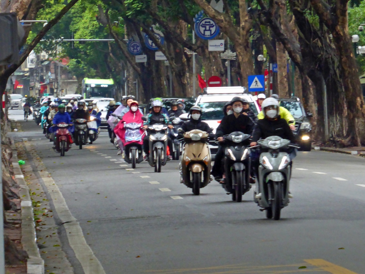 The roads are often dirty from the soil that is washed onto the road by the rain. You have to be very careful on a motorcycle not to skid. Everyone honks. Not because you're in the way, but to draw attention to yourself. Many scooter riders have no rear view and enter a road without looking. Trucks and buses make themselves known with powerful horns. It takes some getting used to. Apart from that, the rules are simple: look out for each other, see what the others are doing. This works even in the supposed traffic chaos in Hanoi. Don't make any unexpected movements and watch out for each other. And it works. The only thing that requires nerves of steel is that everyone comes within a few centimetres of each other.