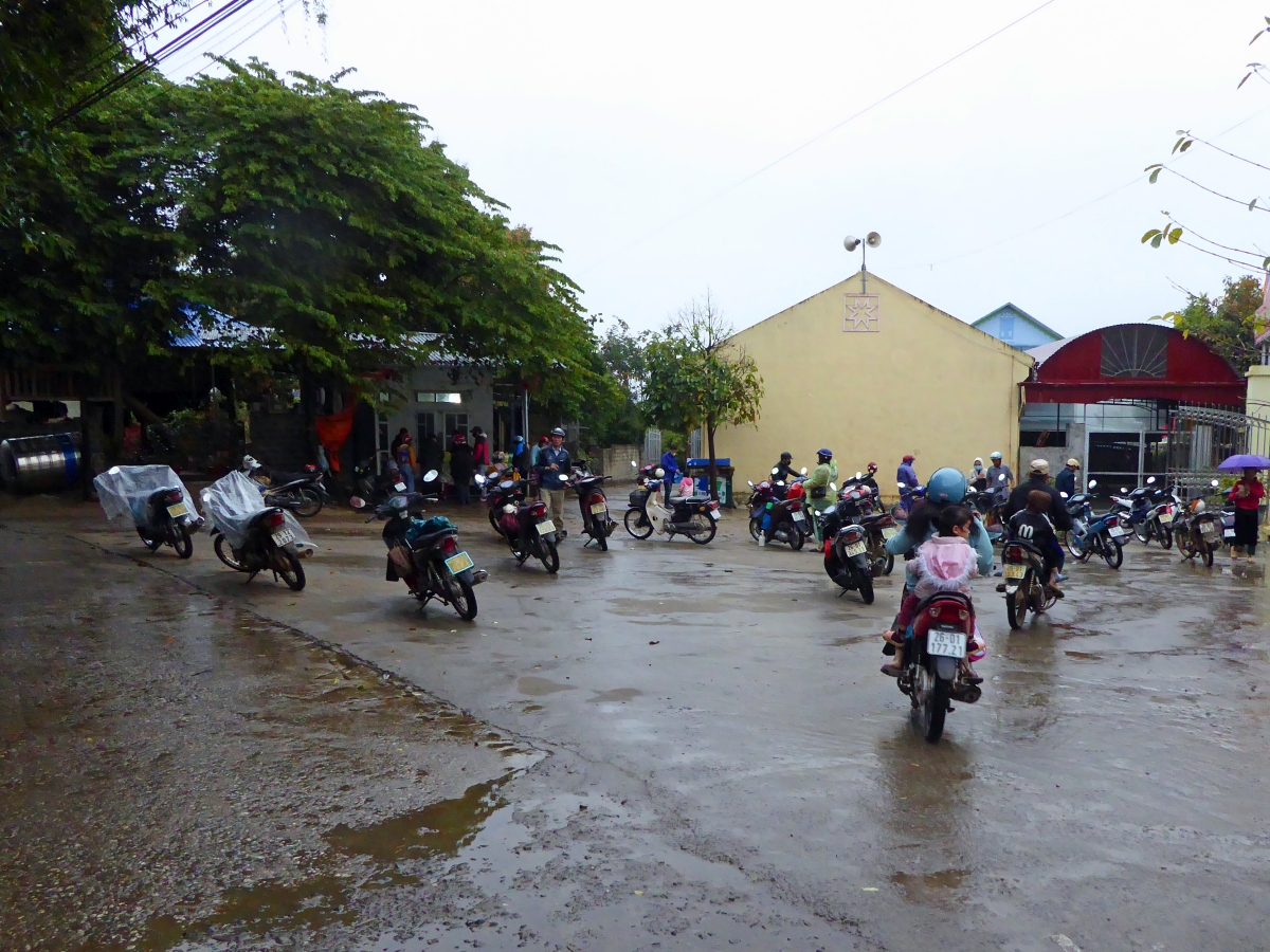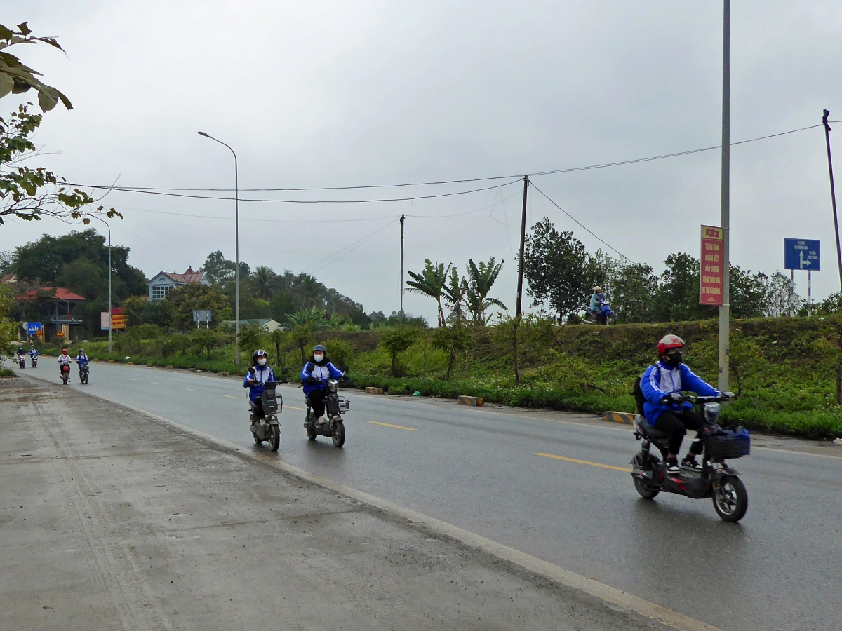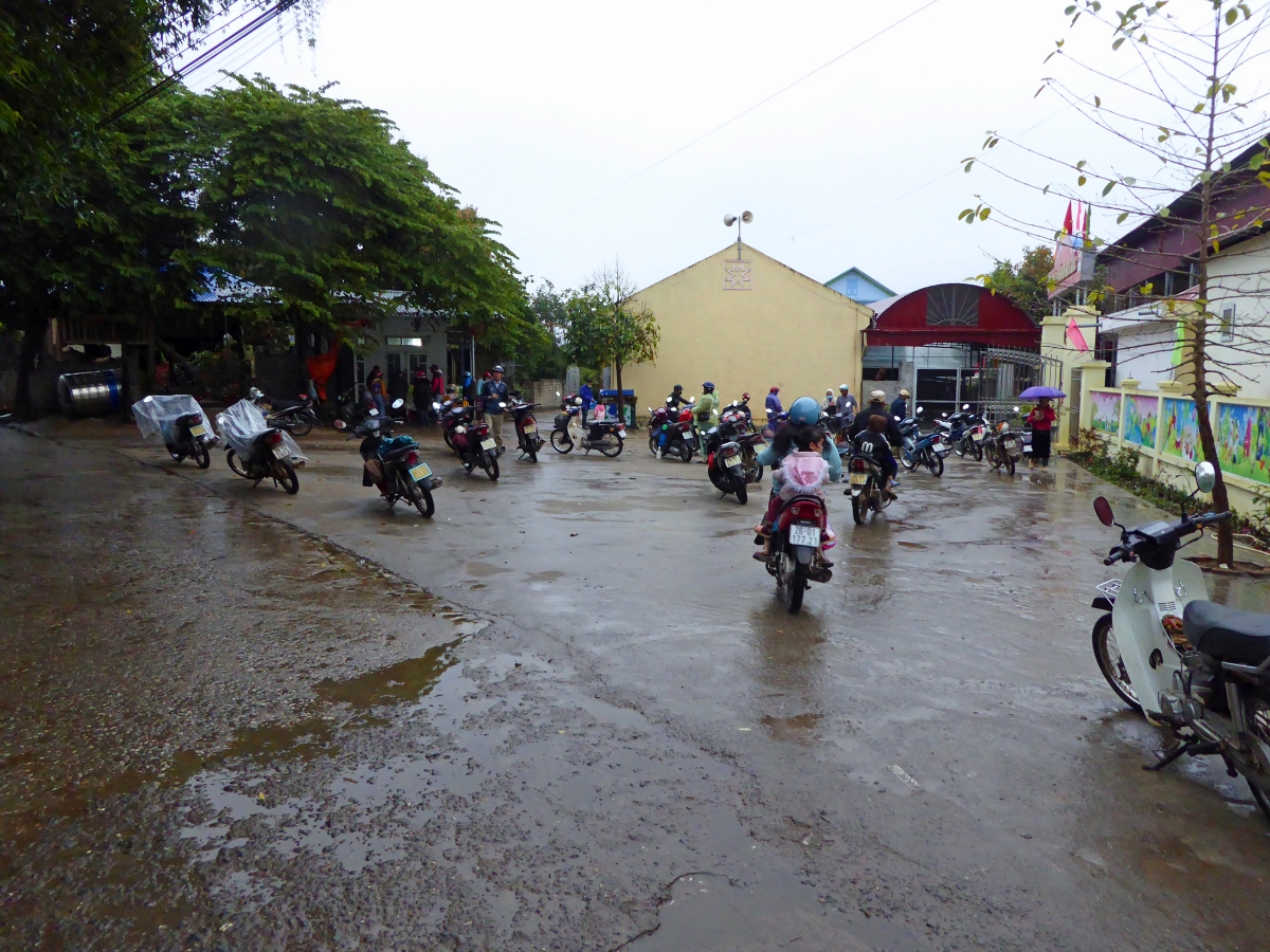 The roads are often dirty from the soil that is washed onto the road by the rain. You have to be very careful on a motorcycle not to skid. Everyone honks. Not because you're in the way, but to draw attention to yourself. Many scooter riders have no rear view and enter a road without looking. Trucks and buses make themselves known with powerful horns. It takes some getting used to. Apart from that, the rules are simple: look out for each other, see what the others are doing. This works even in the supposed traffic chaos in Hanoi. Don't make any unexpected movements and watch out for each other. And it works. The only thing that requires nerves of steel is that everyone comes within a few centimetres of each other.
