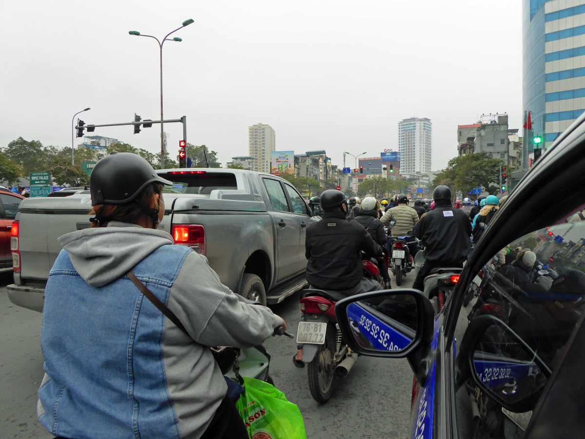 The first day of the tour. We are curious to see how we will make it out of Hanoi. But it works perfectly.