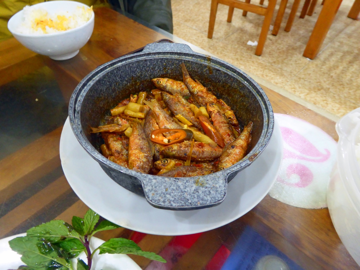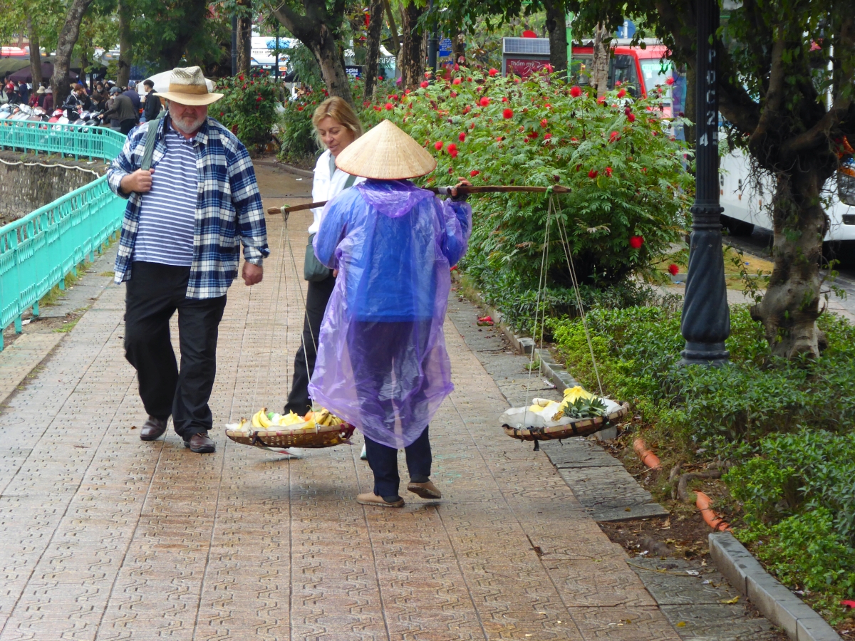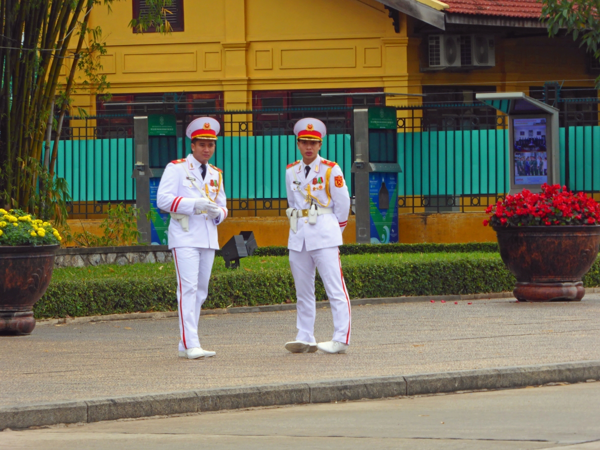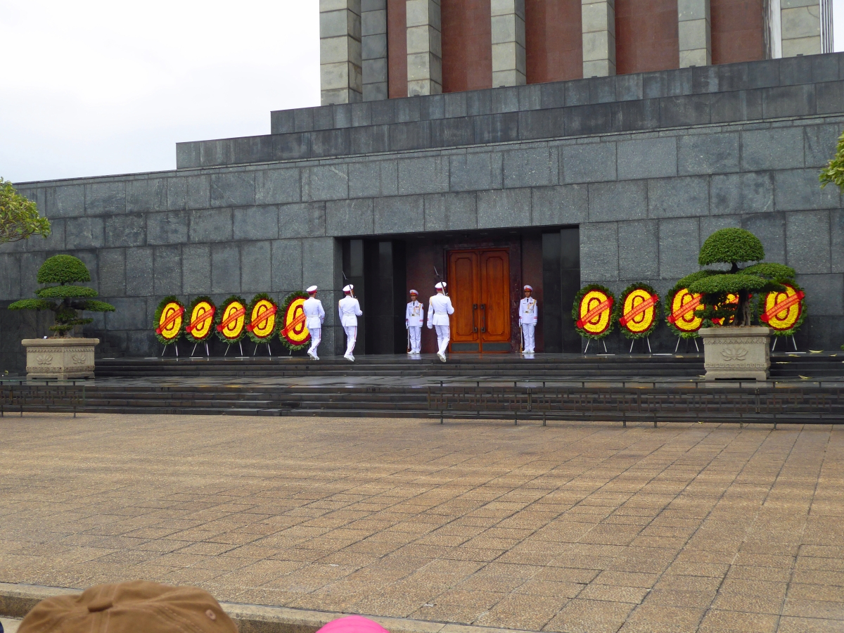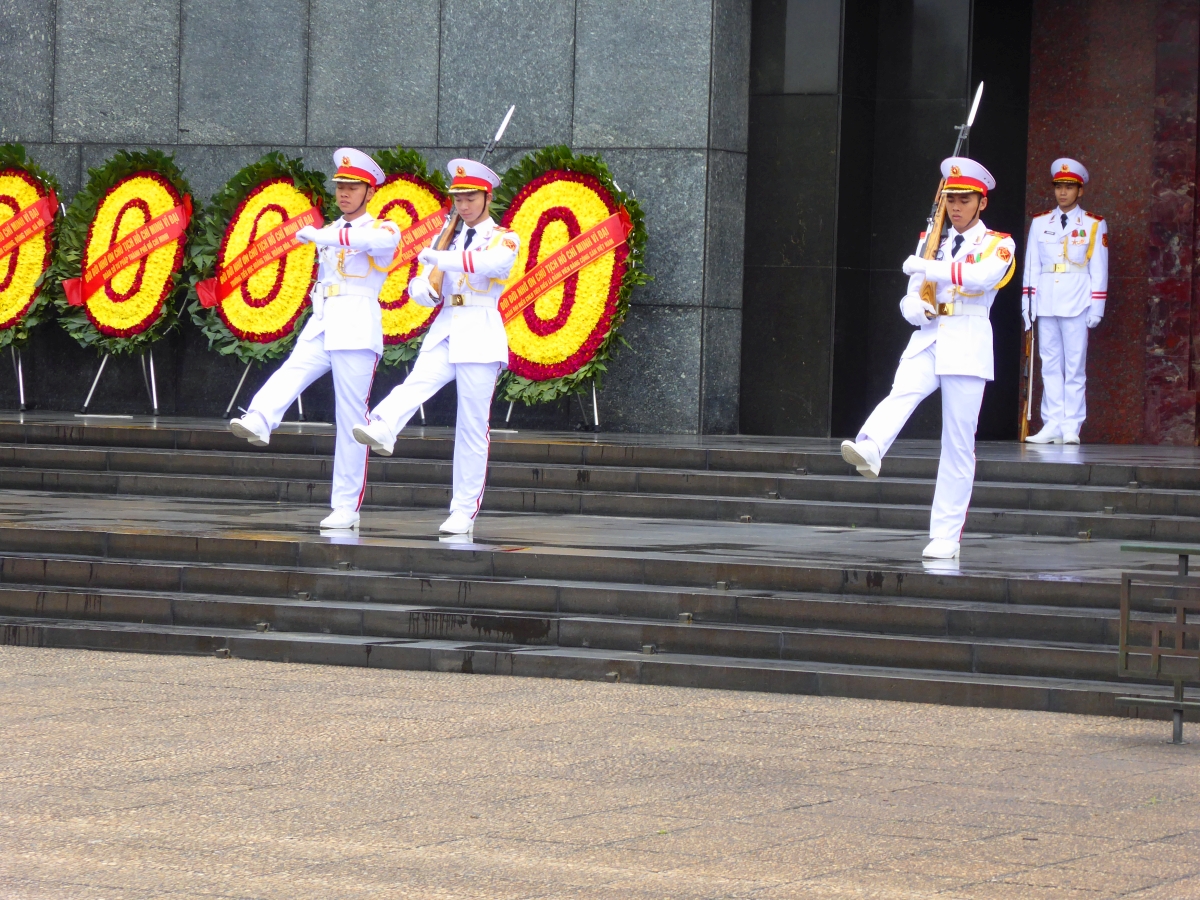 The city suits me like Berlin. Colorful, loud, very busy, lots of traffic and everything you can imagine. The city can be modern with high-rise buildings and wide streets and it can be old with small houses, winding narrow streets and street stores. On the day I arrived, I strolled through the old town, looked at a temple and watched a changing of the guard at the Ho Chi Minh Mausoleum. In the evening, the three of us (John, Paul and I) went out for dinner together.