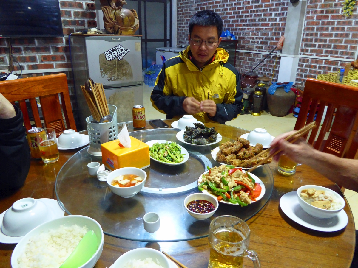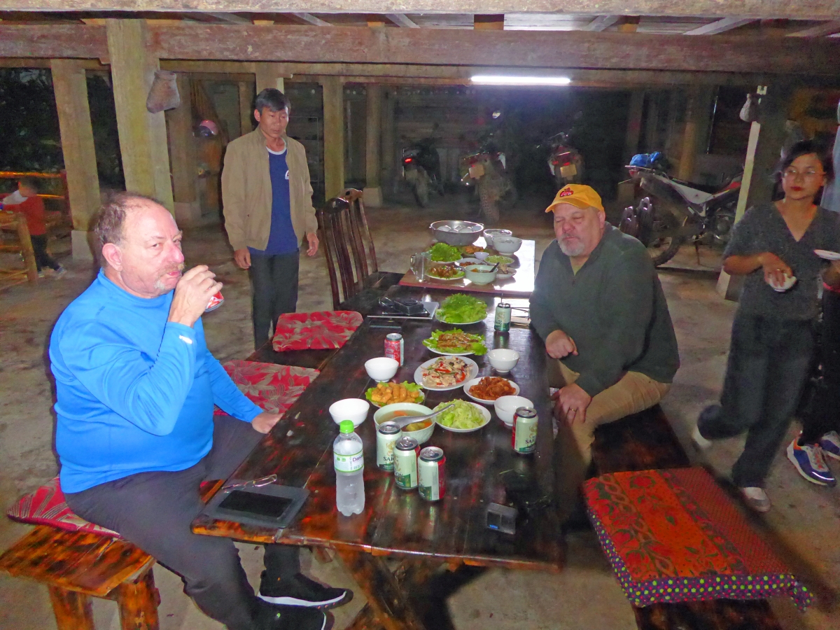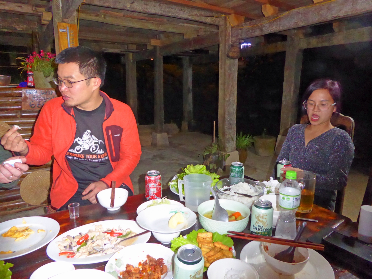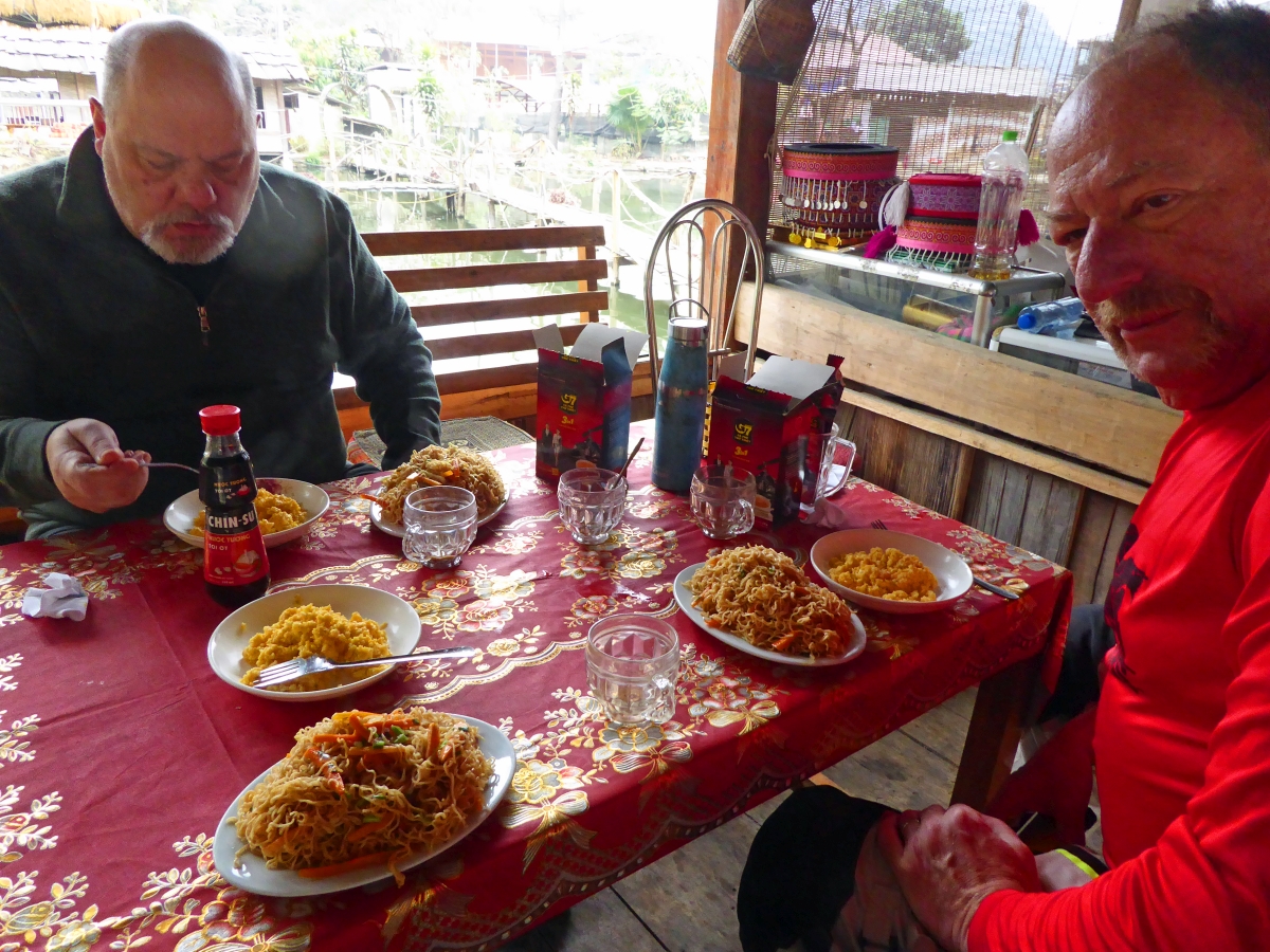 We proceed to Lake Ba Bé. In between, we fight our way through some mud. The evening is very special in a homestay by the lake with guests from the Netherlands, the United Kingdom and the three of us.