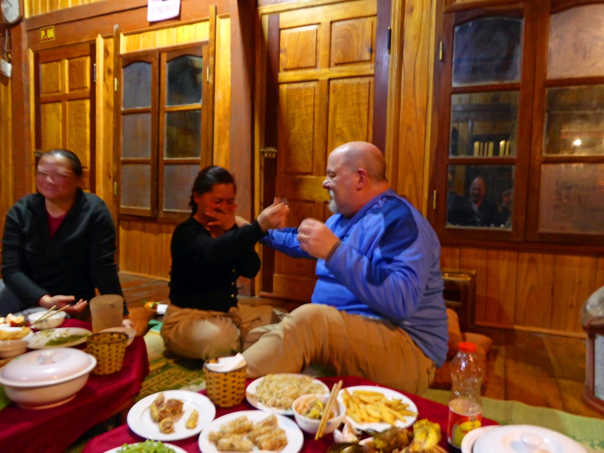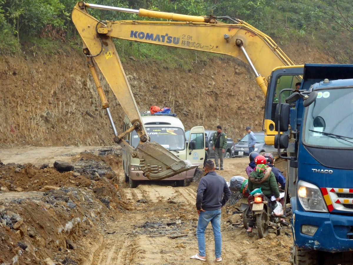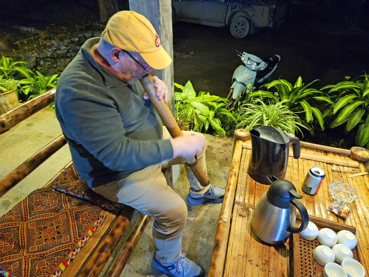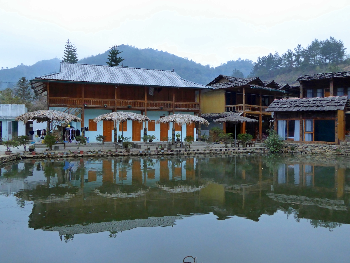 We proceed to Lake Ba Bé. In between, we fight our way through some mud. The evening is very special in a homestay by the lake with guests from the Netherlands, the United Kingdom and the three of us.