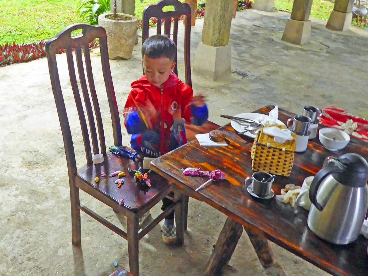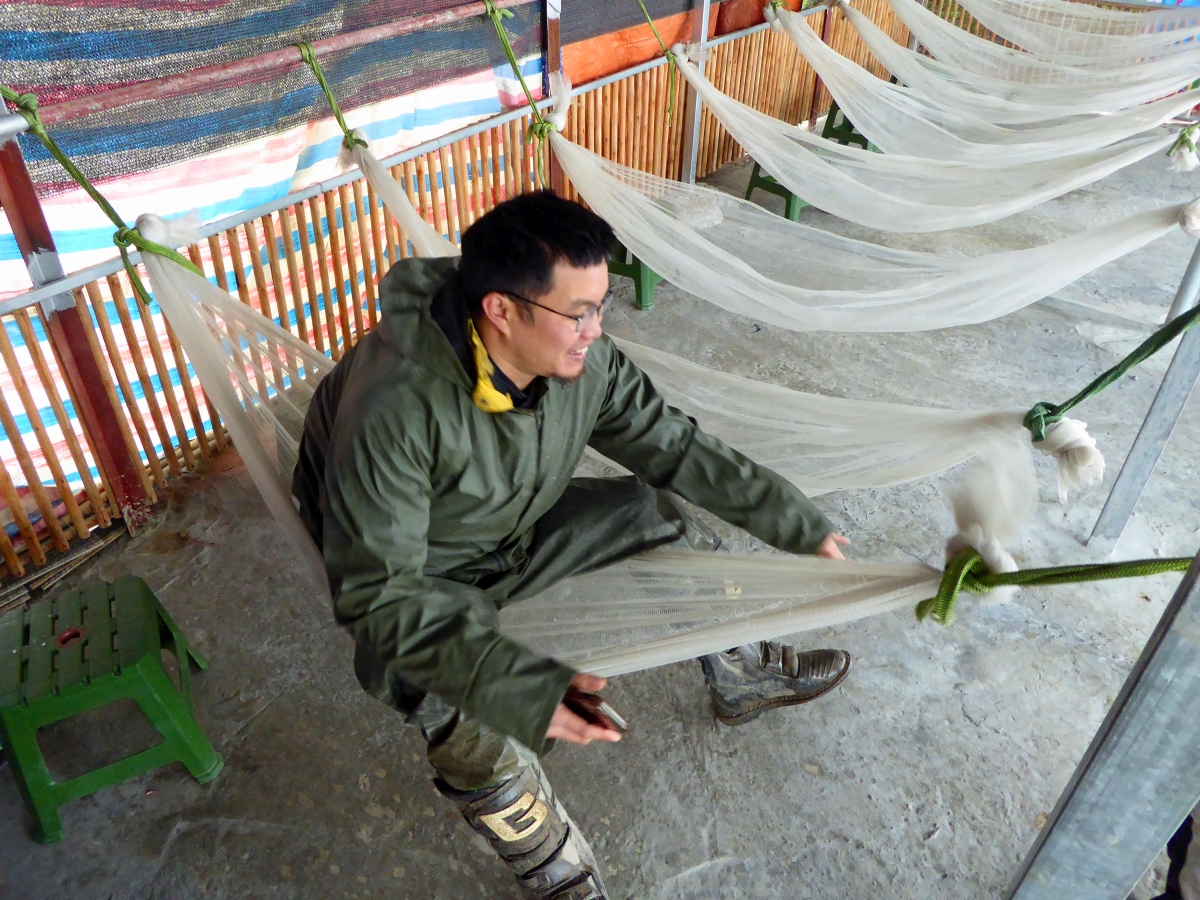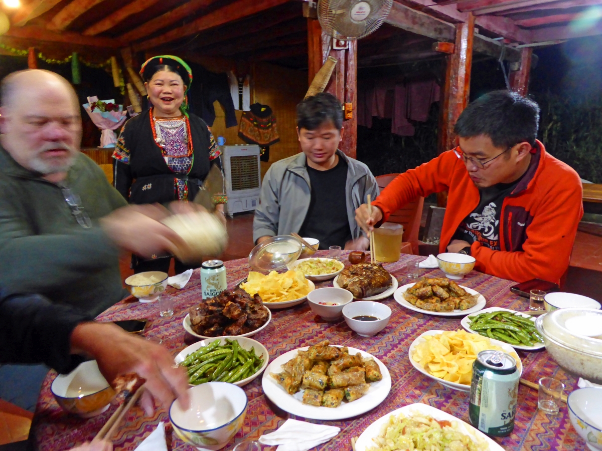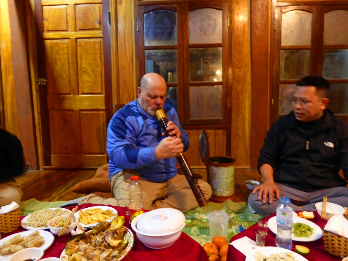 We proceed to Lake Ba Bé. In between, we fight our way through some mud. The evening is very special in a homestay by the lake with guests from the Netherlands, the United Kingdom and the three of us.