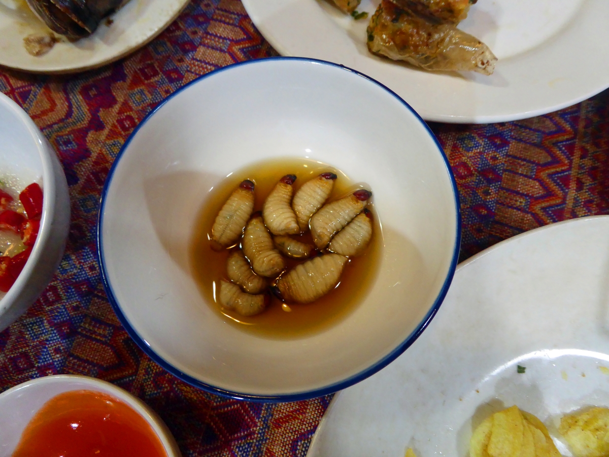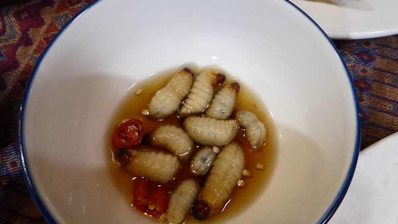 And in the evening we are challenged at dinner. With live beetle larvae.