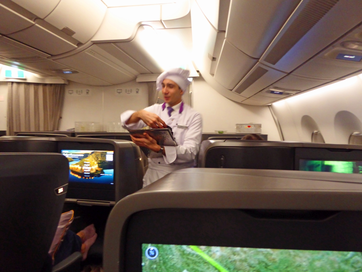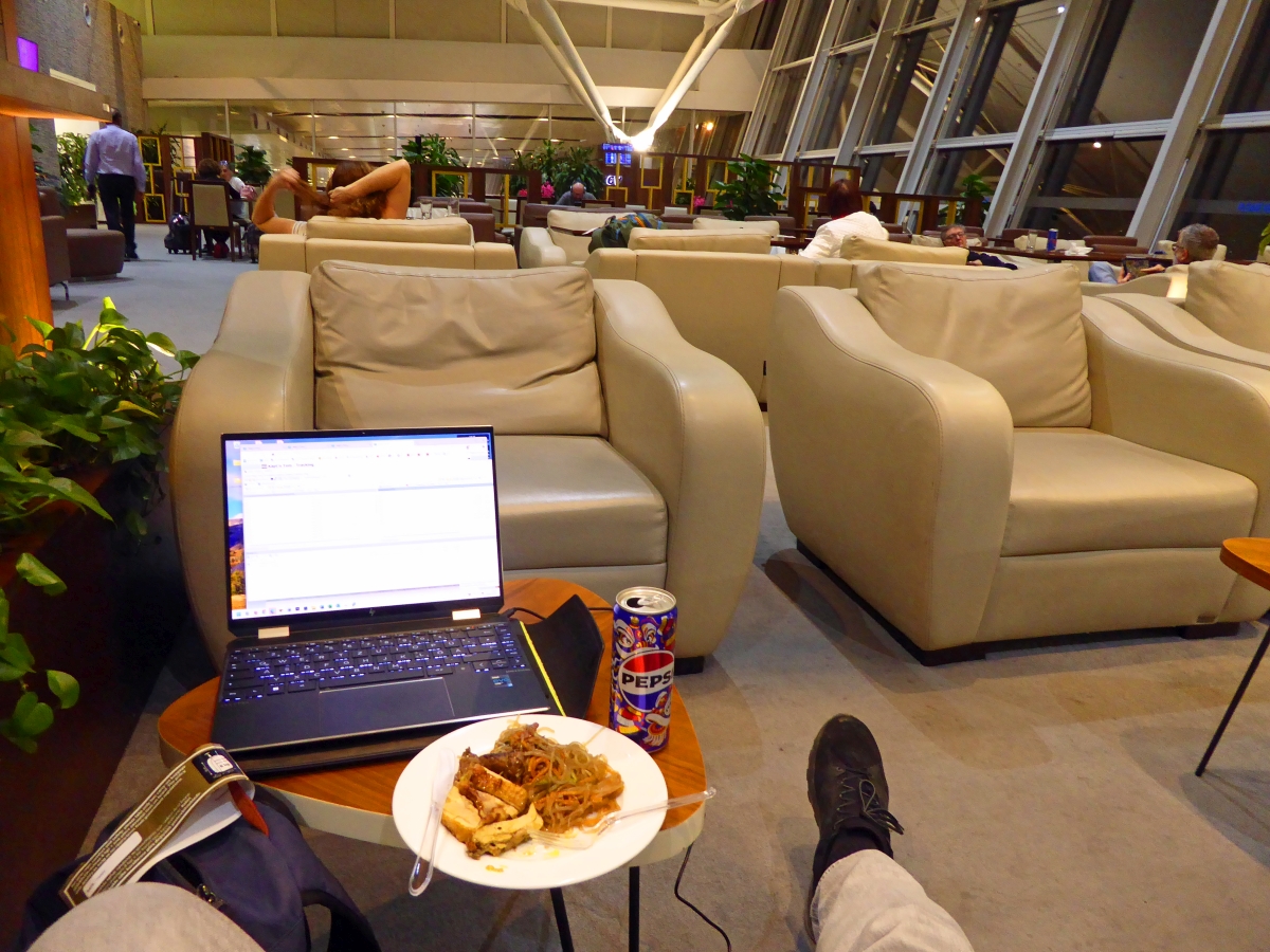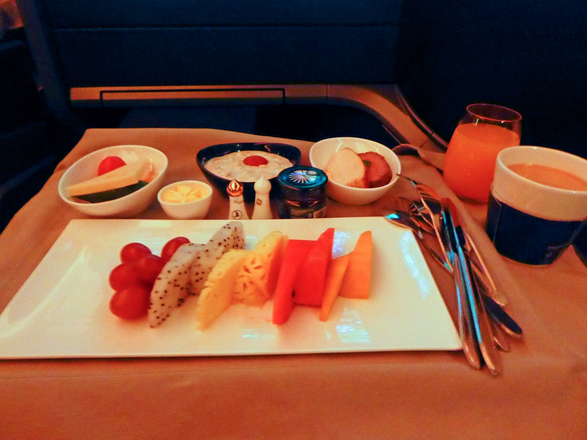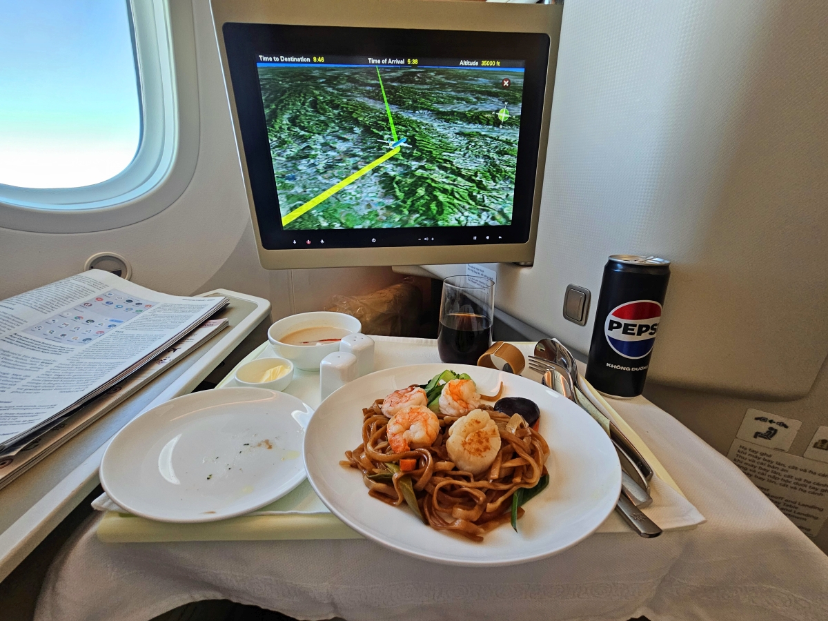 I fly from Berlin to Frankfurt and from there directly to Hanoi. It's a very long flight at around 11 hours. That's why I opted for business class. You can lie down and at least get some sleep. Departure from Frankfurt in the early afternoon, arrival in Hanoi in the morning with a 6-hour time difference. Most of the time it's dark outside and you can't see anything.
