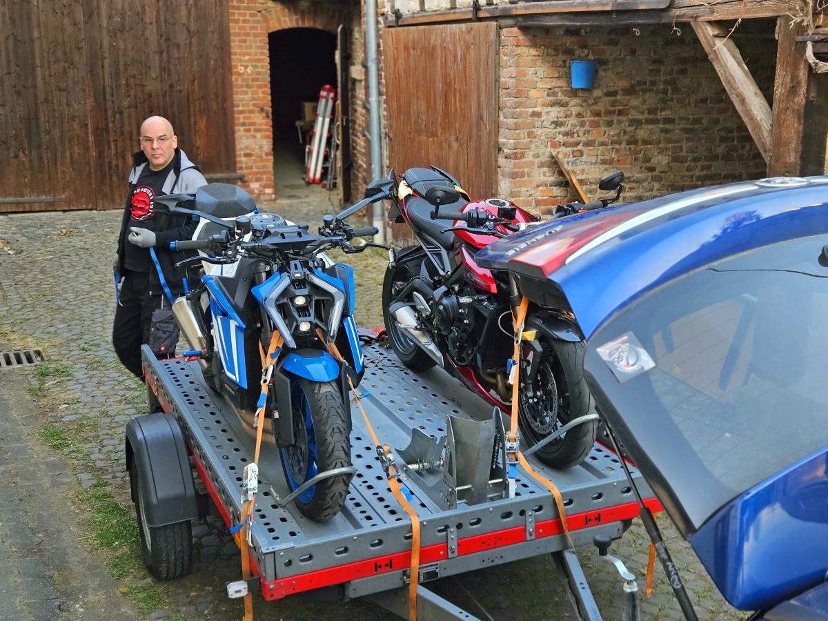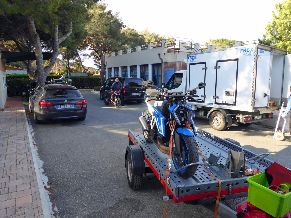 First I drive to Franz in the Westerwald and from there it's another 600 miles south by car with the motorcycles on the trailer. A very strenuous 12-hour drive.