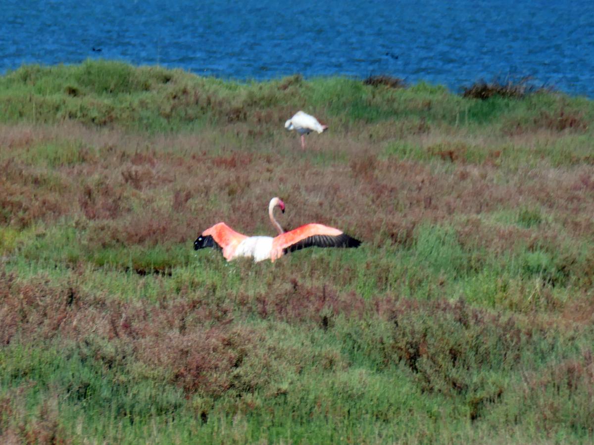There is plenty of wildlife. In addition to cows, goats, sheep and donkeys, there are also pigs and - as a special highlight - free-roaming flamingos.